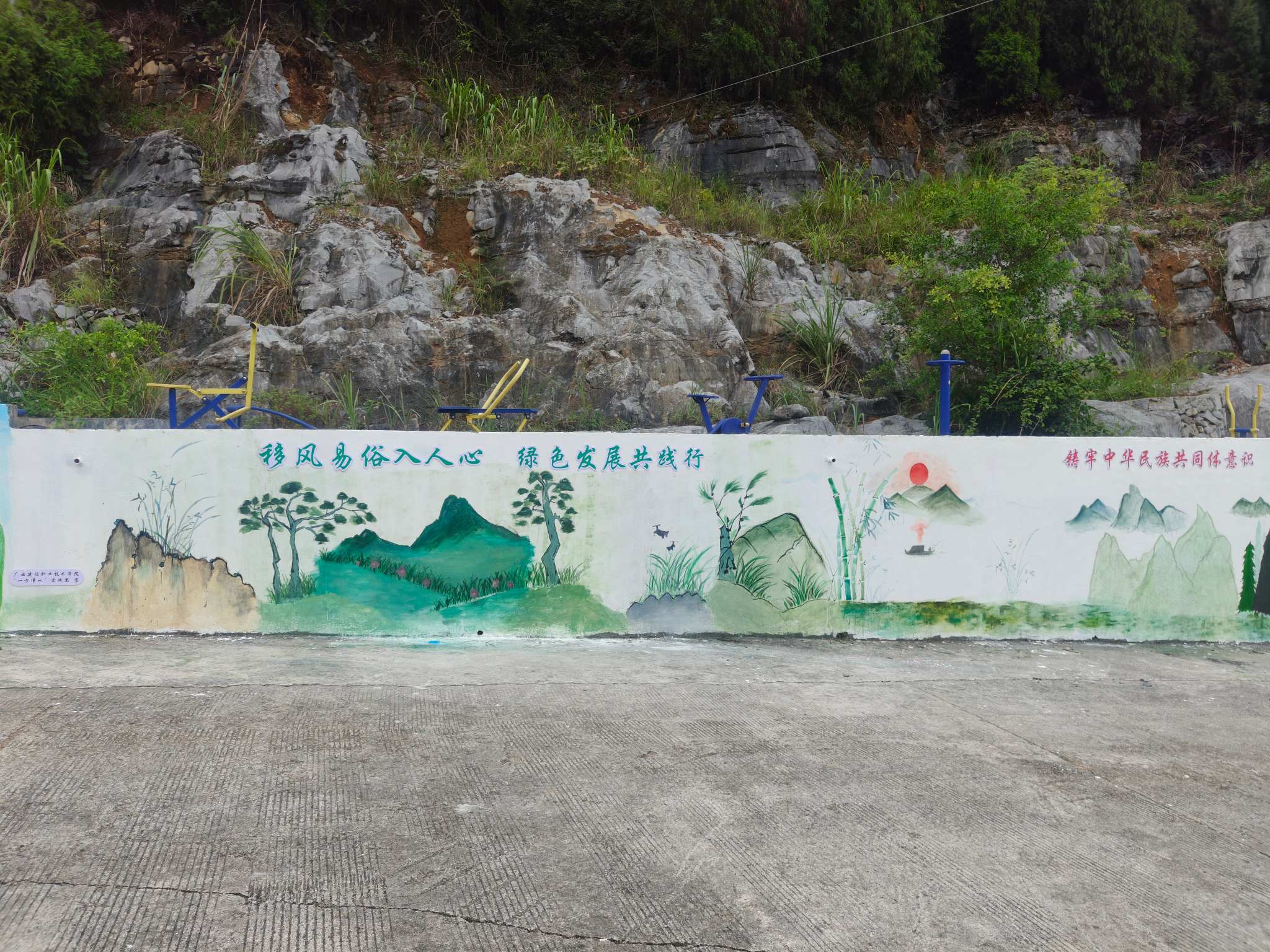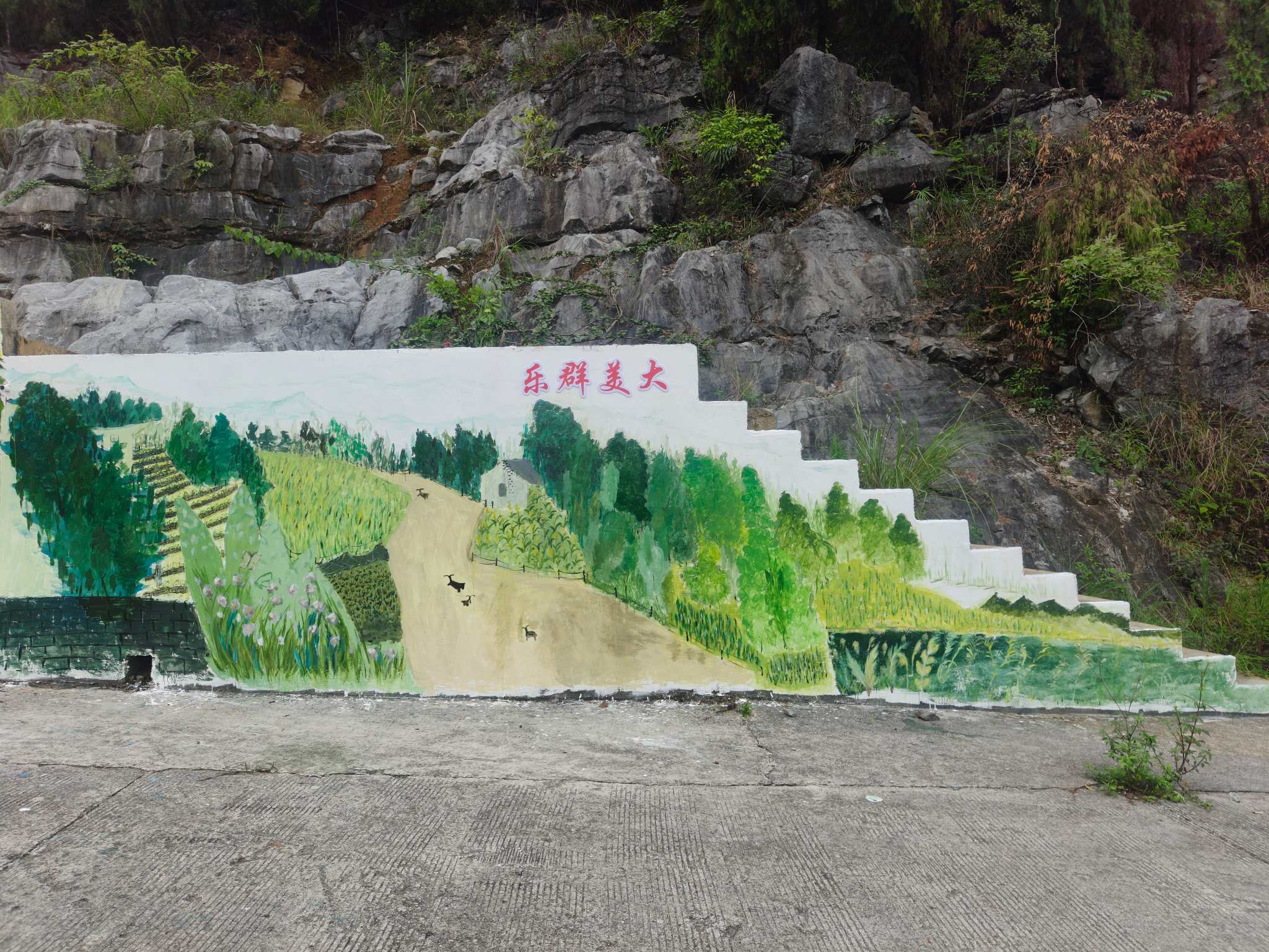 一面墻,是一方天地的畫布,實踐團拿起畫筆,以墻為紙,以彩為墨,在群樂村圍繞“大美群樂”、“建設(shè)美麗鄉(xiāng)村 共享幸福生活”、“鑄牢中華民族共同體意識”、“移風(fēng)易俗入人心 綠色發(fā)展共踐行”、四大主題,通過山水畫、油畫等多種繪畫風(fēng)格,讓墻體成為傳遞理念的“活載體”,在這一方方墻面上落筆生根。