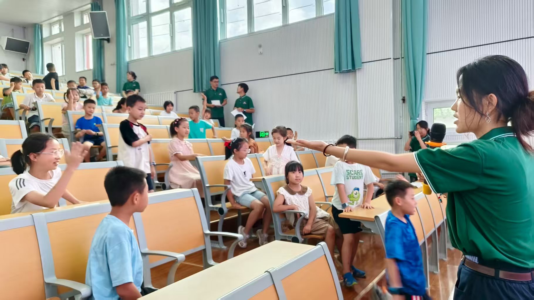 7月24日上午,實踐隊轉戰興化鄉黨群服務中心,為30余名鄉鎮托管班學生開設“普通話魔法課堂”。課程以“鄉村生活情景劇”貫穿,孩子們通過角色扮演學習“種地”“播種”等多音字詞的實際應用;“童聲誦家鄉”環節中,隊員帶領學生用普通話朗讀描寫隴南風土的詩歌,激發對母語與鄉土的熱愛。