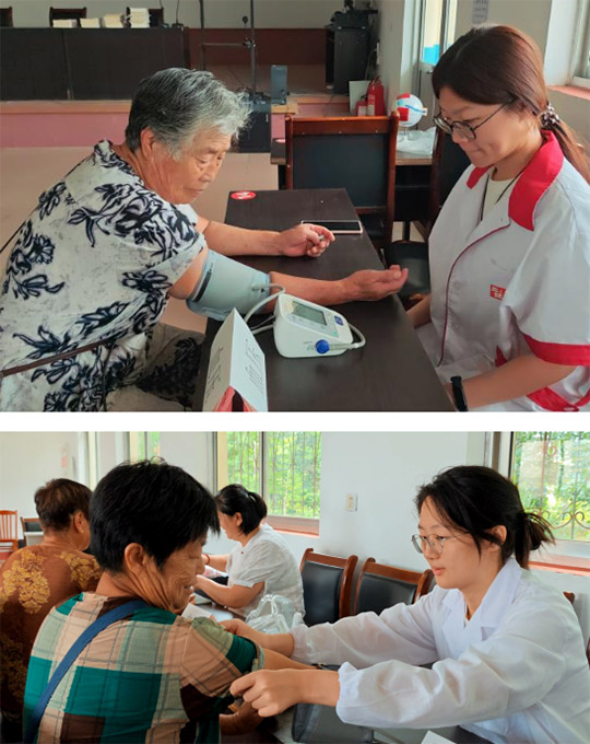 清晨,實踐隊隊員攜帶專業眼科檢查設備抵達西解甲莊村活動中心。現場早已聚集了眾多村民,隊員們迅速布置場地,設置視力檢測區、眼病咨詢區及健康宣教區,以及血壓血糖等基礎檢查區。義診過程中,專家為村民進行了細致的視力篩查、驗光儀檢查及眼底檢查,針對老花眼、白內障、青光眼、干眼癥等常見眼病提供專業診斷,并根據個體情況制定治療建議。