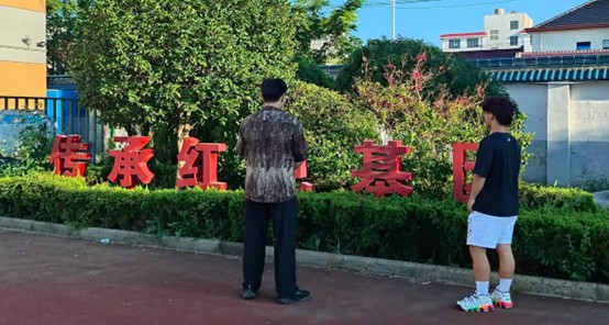 校園小徑旁,“傳承紅色基因” 的鮮紅大字在綠植間醒目矗立。實踐成員駐足凝望,歷史與現實在此刻交織。這簡短的標語,是先輩的囑托,更是當代少年的使命。通過探尋校園紅色標識,孩子們觸摸到傳承的溫度,明白紅色基因需要代代接力,在新時代綻放光彩。
