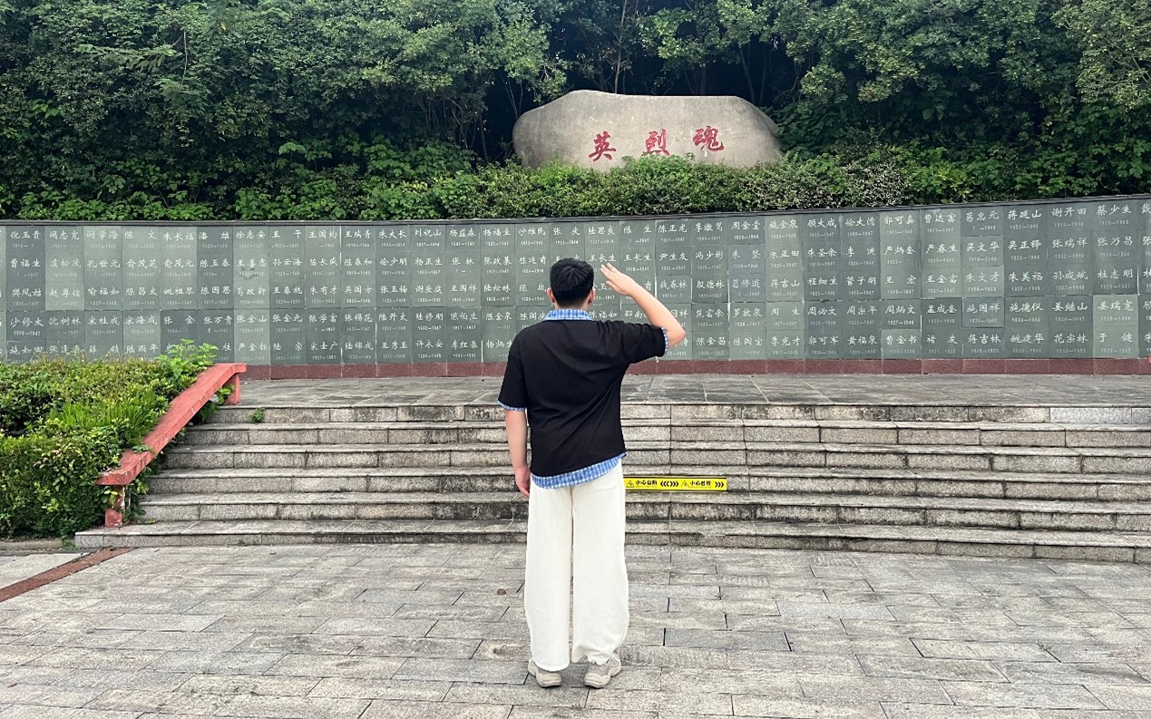 “英烈魂” 石碑前,青山翠柏環繞,實踐成員莊嚴敬禮。石碑上的姓名,是英烈們不朽的豐碑;眼前的敬禮,是少年對先輩的崇高敬意。從課堂聆聽,到碑前追思,七天實踐在此刻升華 —— 紅色傳承,不僅是故事與符號的傳遞,更是精神與信仰的接續,讓英烈精神在新時代少年心中永續傳承。