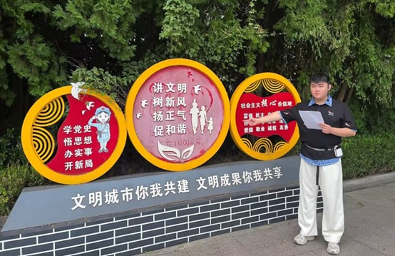 校園外的文明宣傳陣地,實踐成員化身 “紅色宣講員”。指著 “學黨史 悟思想”“講文明 樹新風” 等標識,結合紅色故事與文明實踐,向過往同學闡釋傳承與踐行的意義。從黨史學習到文明共建,宣講把 “紅色傳承” 與 “時代使命” 緊密相連,讓紅色精神走出校園,融入城市文明建設的生動實踐。