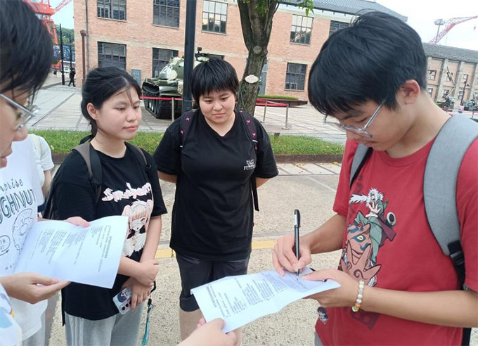 (圖為實踐隊在船政文化博物館區(qū)內(nèi)進行調(diào)查問卷 范夢雨/提供)
