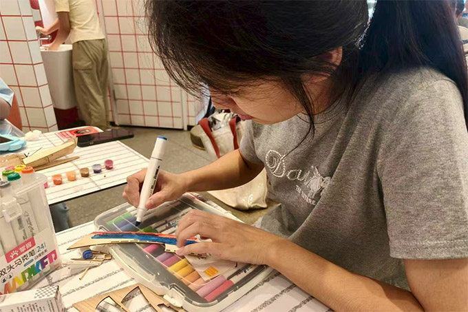 (圖為實踐隊在中國船政休息區(qū)制作船政文創(chuàng) 范夢雨/提供)