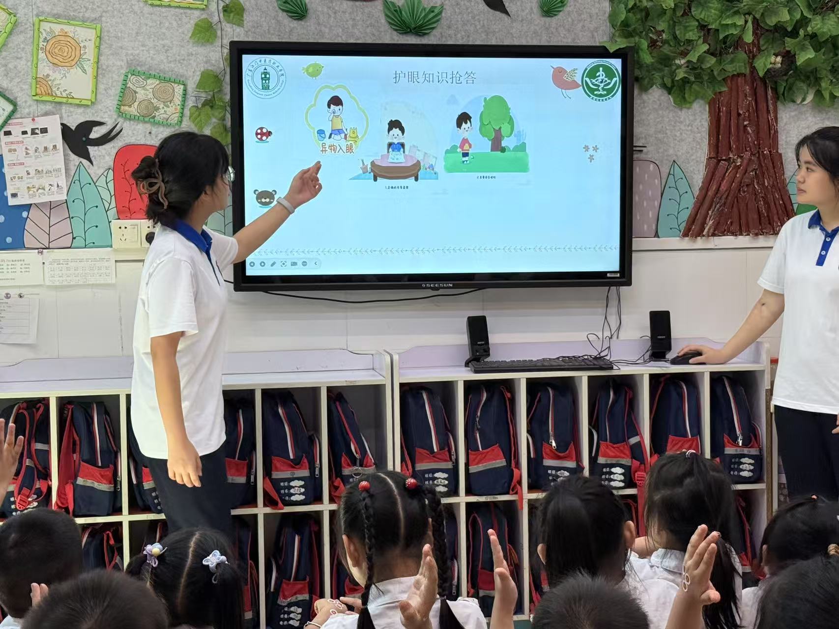 突擊隊以“中醫藥護眼”為切入點,將專業知識轉化為孩子能懂的語言:把角膜比作“手機鏡頭”,視網膜比作“接收影像的機器”,用眼球模型配合“魔法棒點瞳孔”游戲,讓孩子們在歡笑中探索視覺奧秘。