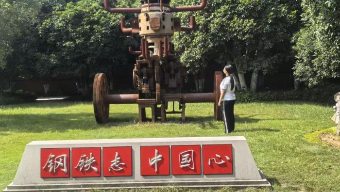 圖為實踐成員王馨參觀鋼鐵廠。王馨供圖
