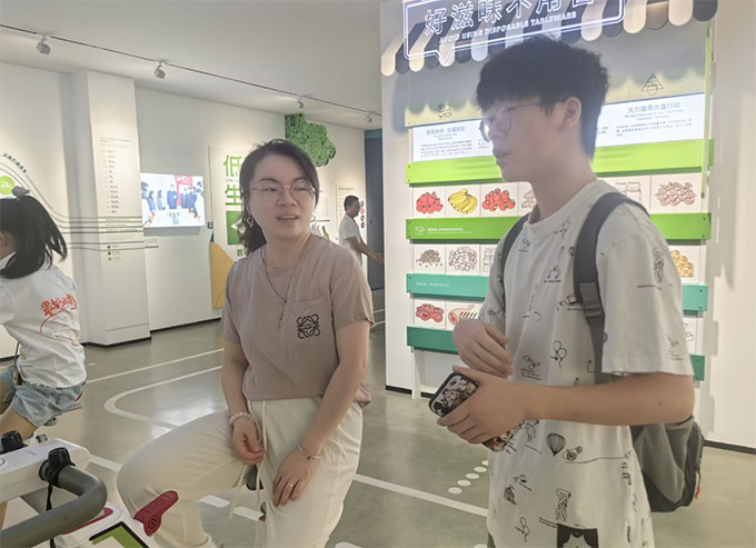 實地采訪聽心聲場館規劃繪新篇 在低碳出行體驗區,實踐團成員遇到了正帶著兩位孩子體驗騎行發電裝置的王女士?吹胶⒆觽優樽屇M路燈亮起奮力蹬車的模樣,成員們上前詢問她對低碳出行的看法。“這種體驗太有意義了,”王女士擦了擦孩子額頭的汗珠笑著說,“平時開車接送孩子總覺得麻煩,今天在這里通過互動游戲讓他們明白,騎車不僅能鍛煉身體,還能減少碳排放,真是一舉兩得;厝ズ笪掖蛩忝恐芄潭◣滋觳叫薪铀秃⒆樱瑥男∨囵B他們的環保意識。”