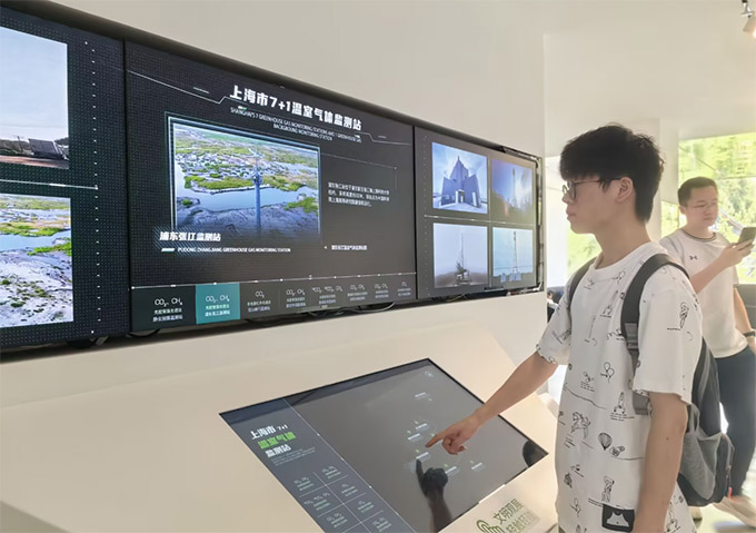展區層層遞進顯巧思多元場景共繪低碳圖景 實踐團成員順著展館動線深入探索,發現碳秘館以“認知-實踐-行動”為展示邏輯層層遞進。在“生活碳足跡”展區,詳實的數據圖表與實物模型直觀呈現著衣食住行的碳排放真相:一件純棉T恤從種植到成衣的碳消耗、不同烹飪方式的能耗差異、公共交通與私家車的碳排放量對比,讓抽象的碳排放變得可觸可感。轉過展區,“低碳生活實驗室”則構建出完整的綠色場景:從太陽能供電的智能家居演示,到廚余堆肥的循環系統,再到舊物改造的創意工坊,全方位展示著低碳生活的多元可能。展區末端的“城市減碳實踐墻”,系統羅列了上海在碳普惠平臺建設、新能源補貼等方面的政策舉措,以及碳監測技術的應用成果。參觀途中,實踐團成員不時遇到駐足探討的游客,有手持記錄本的外地環保研究者專注拍攝數據,也有家長帶著孩子在互動裝置前體驗,熱鬧的場景印證著低碳理念正走向大眾生活。