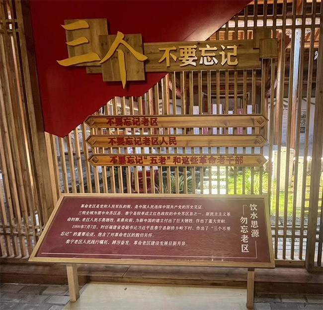 起初,“三個不要忘記”這一概念勾起隊員們強烈的好奇心,大家由此踏入主題館。入館后,視野正中央“三個不要忘記”的呈現極具沖擊力,帶來極大視覺震撼。其下方,清晰陳列著具體內涵:不要忘記老區,不要忘記老區人民,不要忘記“五老”及革命老干部。在后續參觀過程中,隊員們發現主題館內容豐富多元,除上述“三個不要忘記”核心內涵外,還涵蓋泰寧縣在多領域的價值意義,陳列著習近平總書記不同時期關于革命老區的重要論述,以及“三明足跡”相關展示、五大老區精神。這些內容層層溯源,生動闡釋“三個不要忘記”的由來。而圍繞該重要指示的工作要求與取得的實際成果,更讓隊員們深刻感悟革命老區的獨特價值,明晰正確指導思想對經濟建設發揮的關鍵引領作用。