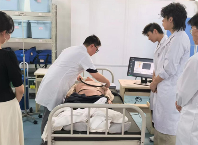 急診科內,醫護人員詳細講解了除顫儀的使用方法,醫護人員通過動畫演示AED在心臟驟停急救中的作用原理,隨后現場演示電極片貼放位置——成人貼右鎖骨下與左乳頭外側,兒童則為胸背對應位置,并強調“聽到語音提示再操作”的關鍵原則。實踐團成員輪流操作,練習開機、貼電極片、放電等步驟,熟練掌握“黃金四分鐘”急救流程。“課堂看視頻與親手操作差別大,包扎松緊、電極片角度都是學問。”團隊成員王文浩在練習后深有感觸。