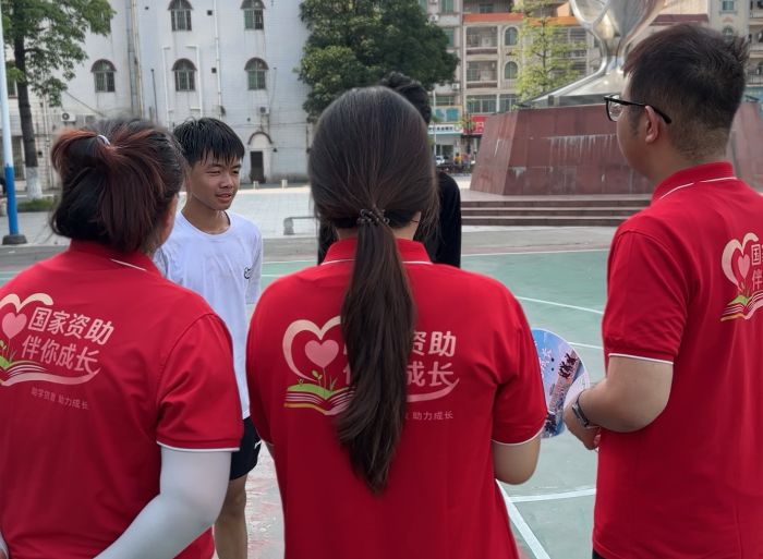 圖為團(tuán)隊(duì)成員對(duì)需求學(xué)生進(jìn)行講解