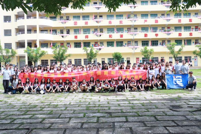 圖為廣東理工學(xué)院藝術(shù)設(shè)計(jì)學(xué)院實(shí)踐隊(duì)師生與金利高新區(qū)第一學(xué)校初三年級(jí)學(xué)生合影