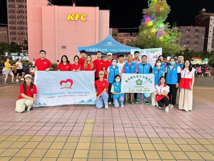 圖為廣東理工學(xué)院藝術(shù)設(shè)計(jì)學(xué)院實(shí)踐隊(duì)師生與金利鎮(zhèn)團(tuán)委、金利鎮(zhèn)社會(huì)工作服務(wù)站工作人員合影 在“學(xué)生資助政策下鄉(xiāng)行”的實(shí)踐里,團(tuán)隊(duì)成員把“宣傳課堂”延伸到每家每戶,在實(shí)踐中鍛煉自我,在下鄉(xiāng)過(guò)程中不斷成長(zhǎng)。