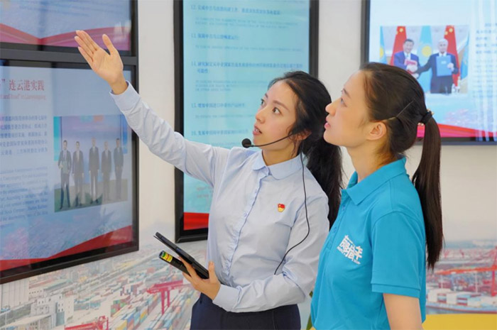 解碼連云港物流合作基地,探索差異化突圍路徑 最后一站,為了更多關(guān)注到班列運輸效率與多式聯(lián)運協(xié)同,團(tuán)隊深入到了連云港(中哈)物流合作基地。在參觀到數(shù)字化調(diào)度中心時,團(tuán)隊成員們了解到雖然每日處理超千標(biāo)箱,可是仍然存在自動化率低、設(shè)備新能源占比不足等問題。當(dāng)“車船直取”作業(yè)直面突發(fā)惡劣天氣,多式聯(lián)運銜接就變得脆弱。因而針對單證流轉(zhuǎn)繁瑣、運力波動、產(chǎn)業(yè)鏈與物流鏈脫節(jié)、依賴政策補(bǔ)貼等要害之處,團(tuán)隊提出各種巧思,為江蘇班列突破同質(zhì)化瓶頸提供實踐藍(lán)圖,恰似為遠(yuǎn)航的船帆綴上星光,讓每一步探索都映照著向新而生的璀璨。