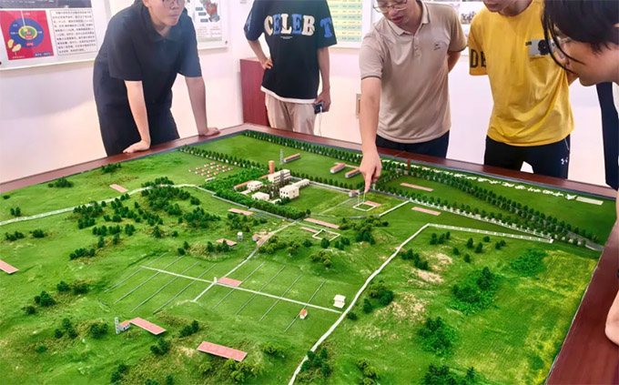 牟老師帶領(lǐng)我們通過(guò)沙盤模擬學(xué)習(xí)沙漠化土地治理的模式,根據(jù)不同的土地恢復(fù)情況,劃定不同的生產(chǎn)區(qū)域,植被恢復(fù)良好的,可以用于耕作和放牧,植被恢復(fù)較差的則圈地禁牧。通過(guò)這一套人與自然相結(jié)合的保護(hù)模式,可以更好的實(shí)現(xiàn)沙漠化治理。