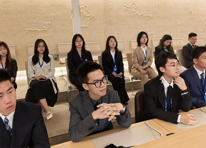 (圖一:審計獅語實踐小分隊在萬國宮前合影拍攝時間:2025年8月7號)