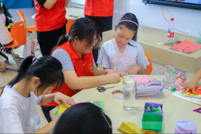 在手工創(chuàng)作課堂,志愿者帶領(lǐng)孩子們發(fā)揮奇思妙想,用彩紙、黏土等材料,制作醫(yī)學(xué)主題手工作品,在折剪捏塑間,將醫(yī)學(xué)符號、急救場景化作童趣創(chuàng)作,既鍛煉動手能力,又加深對醫(yī)學(xué)元素的認(rèn)知。