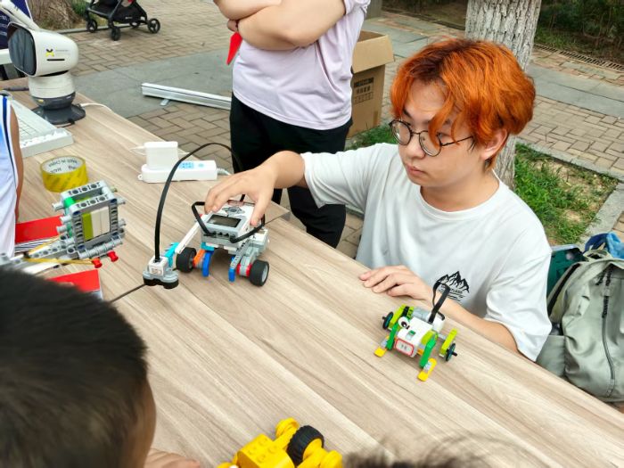 為了讓科普內容更貼合兒童認知,實踐團在活動前1周就開始精心籌備:成員們分工查閱兒童AI科普資料,將復雜的“算法”“編程”概念轉化為“機器人的‘思考方式’”“玩具的‘指揮密碼’”;反復測試自主研發的模塊化小玩具,確保安全性與趣味性兼具;提前聯系社區確認活動場地,劃分互動區域、調試設備,只為給孩子打造更舒適的體驗環境。“看到孩子們主動提問、認真嘗試的樣子,就知道所有準備都值得。”團隊成員、說,有家長反饋孩子回家后還在念叨“機器狗”“無人機”,甚至主動翻找科技類繪本,這種“從好奇到探索”的轉變,正是科普活動最想實現的效果。