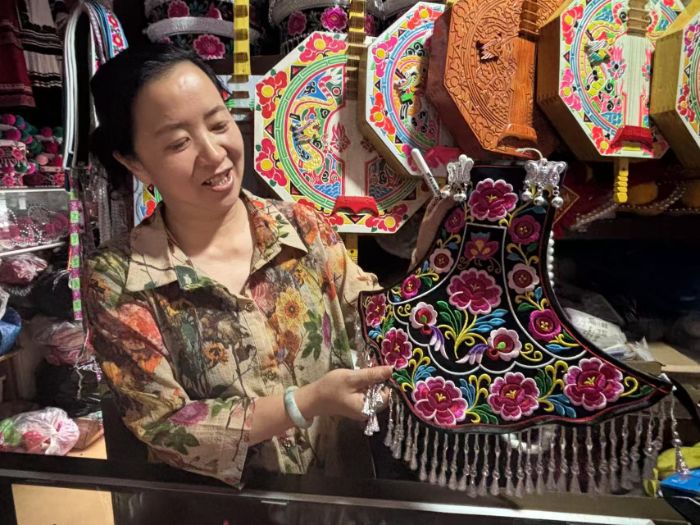 調研中同步關注彝族文化的當代傳承動態。在當地彝繡工坊,隊員實地考察了傳統技藝與現代產業的融合實踐:年輕設計師將太陽歷、火塘等傳統元素轉化為圍巾、手提包等文創產品的設計圖案,相關產品已通過電商平臺實現銷售。工坊負責人在采訪中明確提出“既保留傳統根基,又貼合現代審美”的傳承理念,為傳統文化活化提供了具體案例。