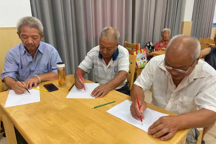 民族文化宣講環(huán)節(jié),實踐人員采用“實物展示+理論講解”模式,通過陳列民族服飾實物、解析服飾特殊紋樣的文化寓意,系統(tǒng)講解不同民族的文化特色、歷史淵源及審美取向,實現(xiàn)民族文化知識的具象化、通俗化傳遞。宣講結(jié)束后,組織老年人開展自由繪畫活動,引導(dǎo)老年人以繪畫形式表達對民族文化的理解與感受,提升老年群體文化參與度與表達積極性。