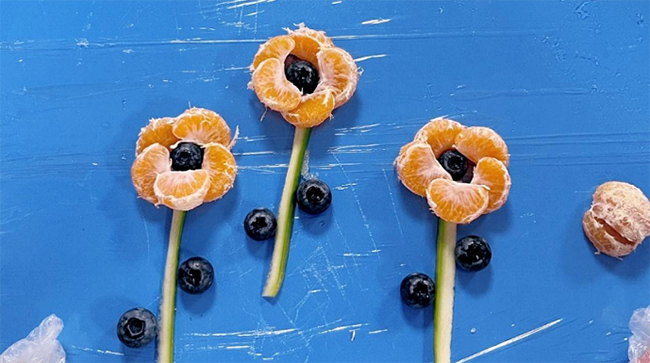 果香物語:巧手生花潤童心 下午二時許,活動在果香四溢中拉開帷幕。"趣味水果拼盤"環節宛如一場色彩的交響樂。志愿者們如同魔術師,將普通的水果化作藝術的素材。他們認真講解,手把手指導,讓蘋果變成螃蟹的爪子,讓藍莓化作小鳥的眼睛。