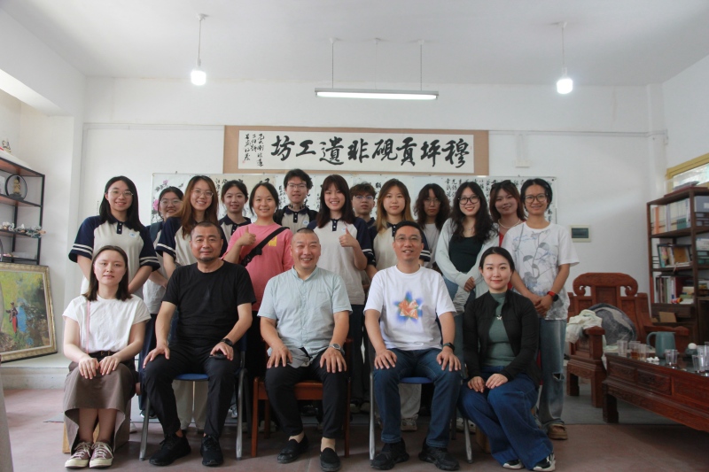 7月12日上午,實踐隊聚焦“小眾”非遺,前往寶興縣穆坪硯制作技藝傳承基地,與縣級傳承人李大剛交流調研。隊員們近距離觀察外郎石的獨特質地與色彩,了解穆坪硯的歷史與“隨形就勢”的制作工藝;聽取李大剛介紹穆坪硯當前面臨的人才短缺、工業化沖擊、市場萎縮等困境,以及其通過開發熊貓硯、故宮系列文創,推進“非遺文化研學服務體”建設,為非遺尋找現代出路的探索。