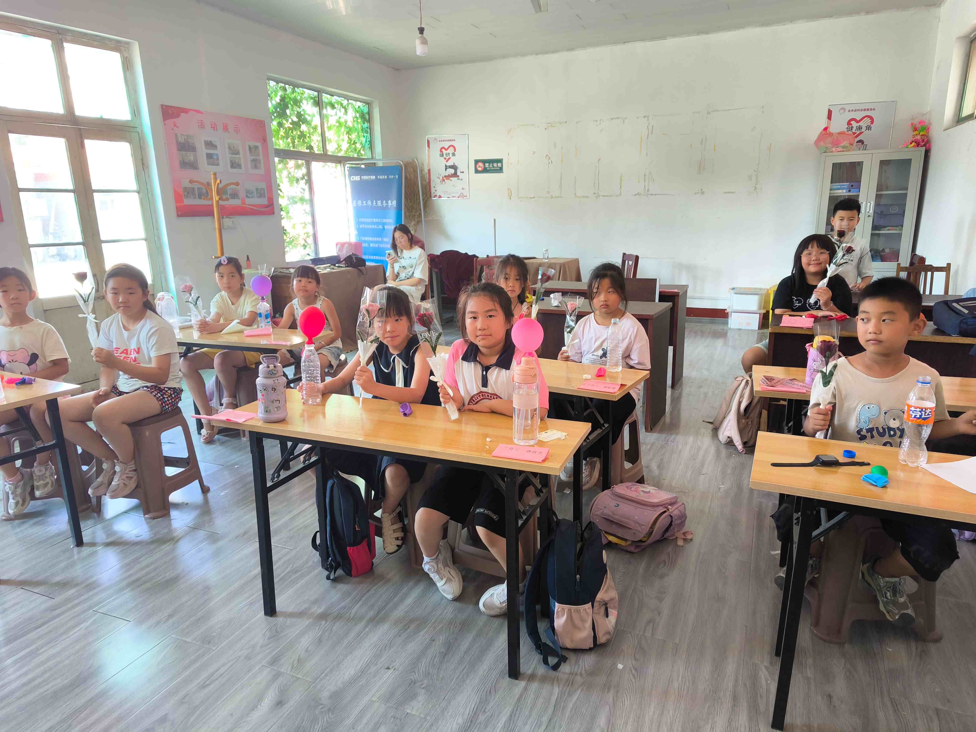 放學前的道別會上,支教隊精心準備了三重禮物:由隊員親手制作的扭扭棒玫瑰花傳遞溫暖心意,活動期間抓拍的成長照片定格歡樂時光,手寫賀卡則寫下對每個孩子的個性化寄語。當收到印有自己笑臉的照片時,不少孩子眼眶泛紅,與支教老師緊緊相擁。村委會活動室內,此起彼伏的"老師再見"聲與抽泣聲交織,見證著這段短暫卻深刻的師生情誼。