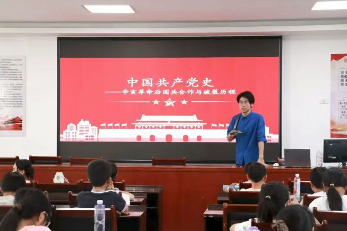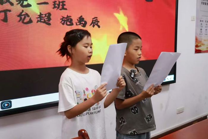 為傳承鄉(xiāng)土文化中的德育智慧,對小朋友們的心理與品德進行雙重滋養(yǎng),微光小隊在夏令營期間開展了心理健康、紅色黨史等一系列課程,并舉辦了一場紅色匯演活動。《滿江紅》的演繹培養(yǎng)奮斗精神,袁隆平故事的演講播撒農(nóng)業(yè)夢想,齊聲合唱《我和我的祖國》傳遞家國情懷。