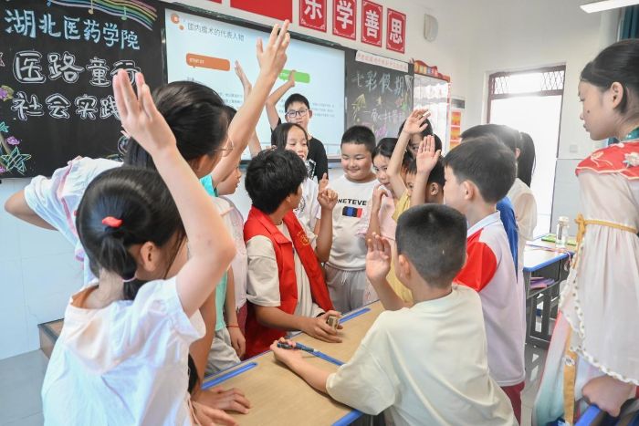 “醫路童行”社會實踐隊已在該校開展為期六天的支教活動,每一天都被孩子們純真的笑容與旺盛的求知欲所填滿。此次活動不僅是青年學子“三下鄉”社會實踐的生動實踐,更是將湖北醫藥學院的醫學人文關懷融入鄉村教育幫扶的具體行動。隊員們充分利用學科特色,在課程中融入健康理念引導,同時也注重培養孩子們樂觀自信、樂于交往、勇于探究的綜合素養。看到孩子們滿足的笑臉和閃閃發亮的眼神,是對志愿者們傾情付出最珍貴的回饋。