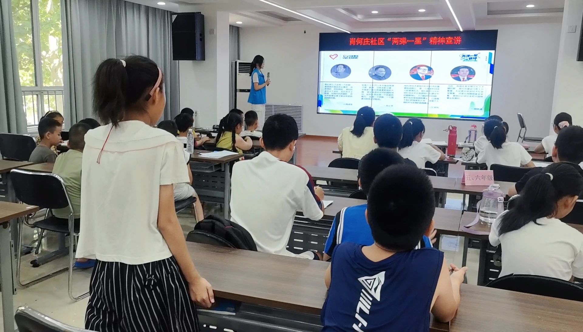 宣講過程中,志愿者首先通過一段視頻向青少年展示“兩彈一星”事業(yè)發(fā)展的艱辛歷程,隨后用通俗易懂的語言講述新中國成立初期面臨的種種困難,再到科研人員們?nèi)绾慰朔刂靥魬?zhàn),最后成功研制出原子彈、氫彈和人造衛(wèi)星。志愿者還提到為國家機密而隱性埋名多年的鄧稼先、在飛機失事時用生命守護機密文件的郭永懷以及在艱苦環(huán)境中默默堅持研究的于敏。科研人員在困境中堅持國家利益至上、默默奉獻的精神,讓青少年眼中閃爍著光芒。