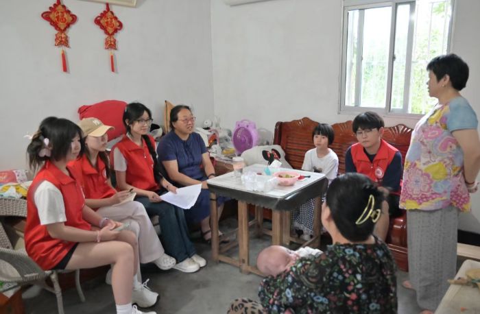 圖為關愛留守兒童活動中,志愿者與指導老師家訪了解情況,孩子們配合交流,氛圍溫暖。多彩大學生網黃夢婷攝