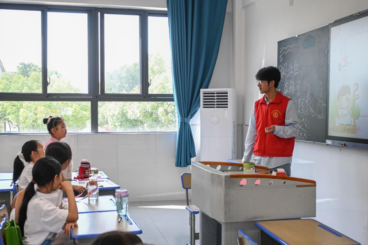 “有些傳染病會讓我們的呼吸道不舒服,像水痘、腮腺炎、麻疹,你們聽說過這些病嗎,知道它們有什么特別的癥狀嗎?”實踐隊成員用生動的案例和互動實驗,將流行性感冒、手足口病等夏季高發疾病的傳播途徑、預防措施轉化為通俗易懂的知識。