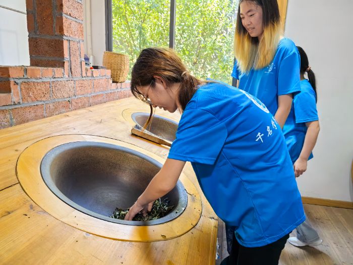 實(shí)踐期間,隊(duì)員們跟隨徐陵走進(jìn)茶山,親手參與肉桂茶采摘,并體驗(yàn)了日光萎凋、做青、炒青、碳焙等武夷巖茶傳統(tǒng)制作流程。從田間到工廠,隊(duì)員們不僅了解到茶葉生產(chǎn)的復(fù)雜工藝,更切身感受到茶人堅(jiān)守的匠心精神與農(nóng)業(yè)勞動(dòng)的艱辛。