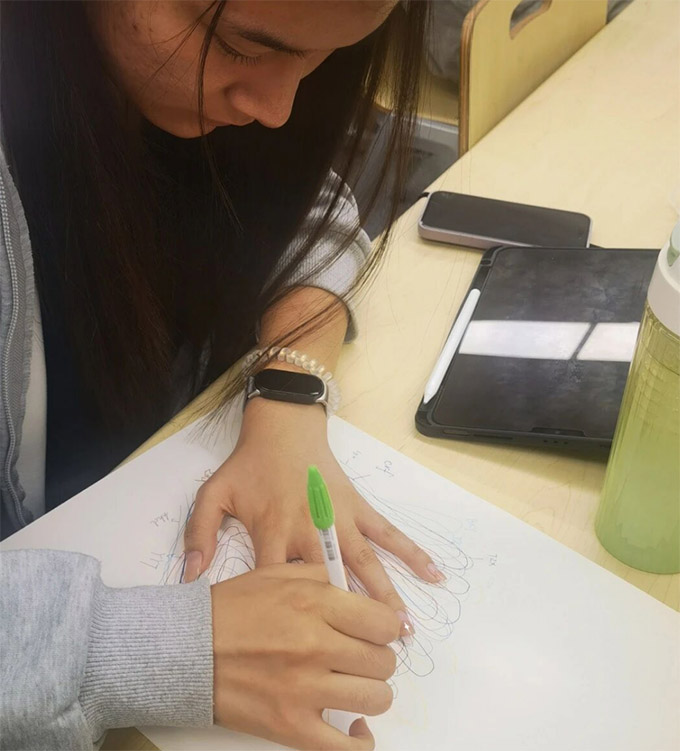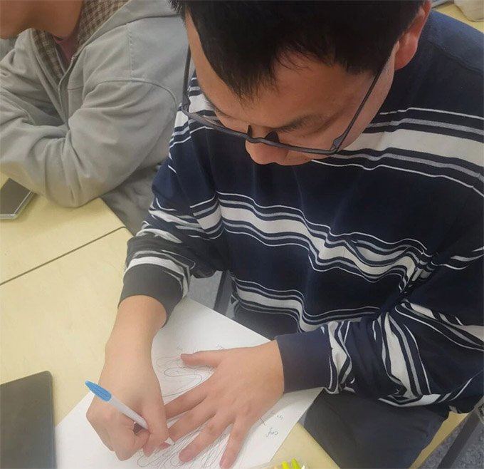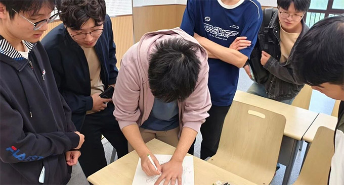隨著活動(dòng)推進(jìn),教室里的創(chuàng)作熱情愈發(fā)濃厚。有的同學(xué)專(zhuān)注勾勒掌紋,有的認(rèn)真挑選彩筆,各有各的投入模樣。在這個(gè)過(guò)程中,同學(xué)們不僅釋放了科研與生活中的壓力,更通過(guò)這張承載著所有同學(xué)手輪廓的紙,感受到了與全班同學(xué)緊密相連的溫暖,心靈在互動(dòng)與創(chuàng)作中得以舒展愉悅。