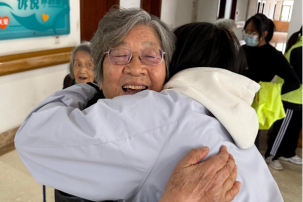 (志愿者與老人們相擁道別 攝影|劉柳)