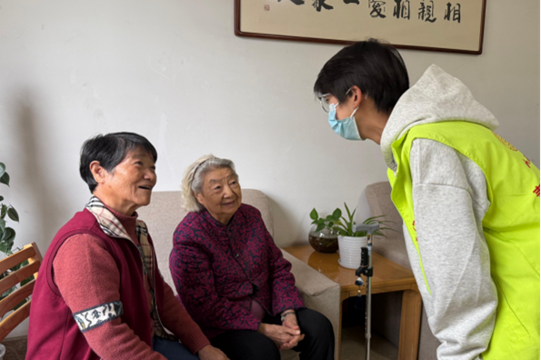 (志愿者與老人們熱情交談 攝影|劉柳)