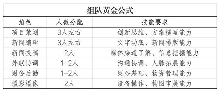 ②按需求組隊(參考下表)
