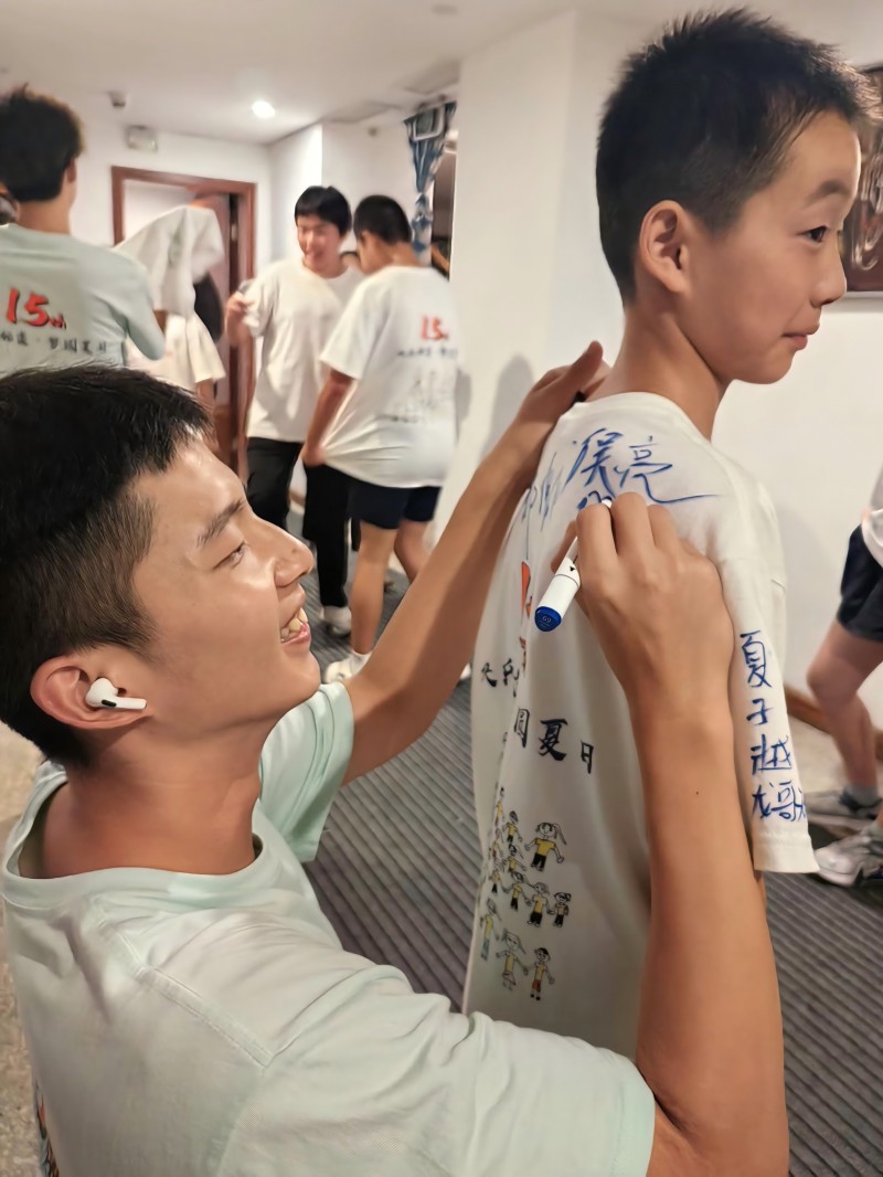 在為期四天的夏令營中,小營員們參加了破冰晚會、開營儀式、運動會、尋寶游戲、心愿朗讀會、手工活動、漆扇制作、性教育課堂、閉營晚會等一系列活動,不僅收獲了許多小禮品,還和身邊的志愿者哥哥姐姐以及小伙伴們結下了珍貴的友誼——結識了打籃球共同愛好者,一起在飯后進行簡單的切磋;建立了各式各樣的好友群聊,如“下水道女團”,在群聊中分享夏令營的最新信息;還成立了奇怪食物挑戰聯盟,將餐桌上的食物一掃而空......剛來時還有些怕生,互不相熟的孩子們,漸漸成為了好朋友。