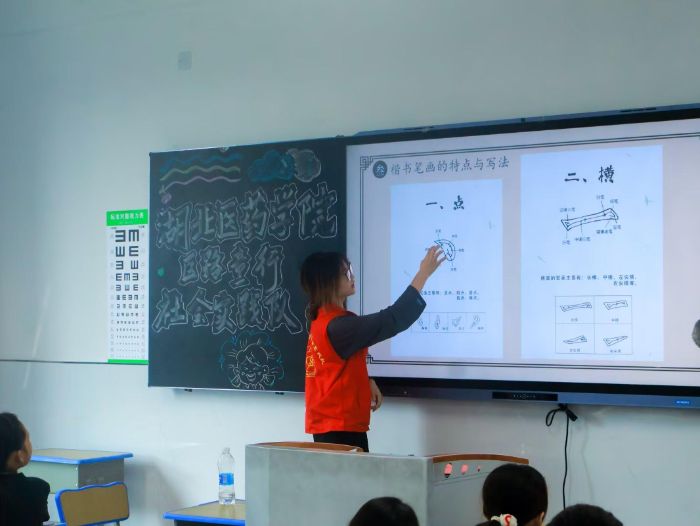 在王家坪紅軍小學,傳統文化與創意表達成為課程的核心。書法課堂上,隊員們手把手指導孩子們練習毛筆字,從橫平豎直的起筆規范到利落有力的收鋒技巧,耐心糾正每一個細節。隨著課程推進,孩子們筆下原本稚嫩歪扭的字跡逐漸變得工整有序,專注的眼神中透露出對傳統文化的濃厚興趣,墨香裊裊間,傳承的種子悄然扎根。手繪課上,隊員們摒棄“標準答案”的束縛,鼓勵孩子們釋放天性——紙上綻放出形態各異的冰淇淋、長著翅膀的星星等充滿童趣的作品,每一筆線條都承載著孩童獨有的想象力與創造力,成為夏日里最生動的注腳。